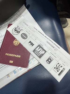 Die Grenze hat bis 20:00 Uhr offen und ist total modern. Also die Argentinische und Chilenische Abfertigung an je 3 Schaltern in Summe 6. Neu ist auch, das gefragt wird, ob man verheiratet ist (äh so eine plumpe Anmache😁) und welchen Beruf man hat. Als sie zum 3. Mal Ingenieur schreibt lacht sie endlich. Was auch neu ist: Die Tasche muss zum Röntgen und ein Blick in die Koffer. Ich schmuggele mittlerweile das vierte Mal die Bifi´s über die Grenze😎